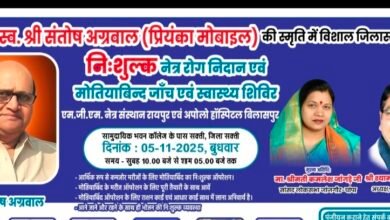 सक्ती: स्वर्गीय संतोष अग्रवाल (प्रियंका मोबाइल) की पुण्य स्मृति में 5 नवंबर, बुधवार…