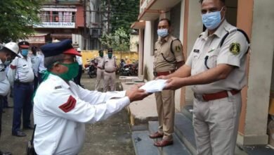 यातायात पुलिसकर्मियों को प्रदान किया गया रेनकोट व कालर फैन