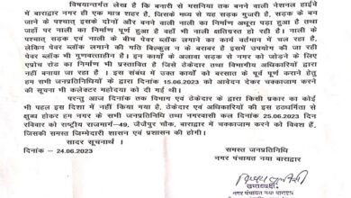 बाराद्वार नगर के जनप्रतिनिधियों सहित नगरवासी करेंगे चक्काजाम,