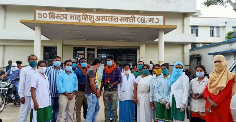 ज्ञात हो कि वैश्विक महामारी कोरोना वायरस के जांच के लिए सामुदायिक स्वास्थ्य केंद्र सक्ती से नितेश कुमार धृतलहरे जो कि एमएलटी के पद पर पदस्थ है को जिला चिकित्सालय जांजगीर कोरोना वारियर्स के रूप में जांच करने हेतु 25 अप्रैल 20 को ड्यूटी लगाई गई थी। जो कि 12 जून तक जिले में कोरोना जांच के सेम्पलिंग कार्य में संलग्न थे। उसके बाद नितेश कुमार 14 दिनों तक होम आइसोलेशन में थे जो कि 25 जून को खत्म हुआ। आइसोलेशन खत्म होते ही 26 जून को अपने कार्य में सामुदायिक स्वास्थ्य केंद्र सक्ती में ज्वाइन किए, जिनका पूरे स्टाफ के द्वारा आतिशबाजी और फूल माला के साथ स्वागत किया गया।