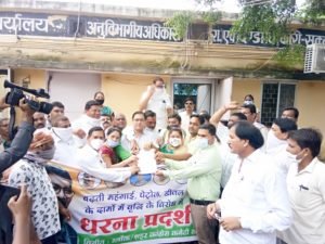 धरना प्रदर्शन के पश्चात अनुविभागीय अधिकारी राजस्व कार्यालय में मूल्यवृद्धि के विरोध में ज्ञापन सौंपा गया ।