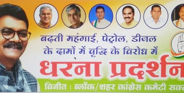 सक्ति : आज दिनाँक 3 जुलाई को सक्ति ब्लाक/नगर कांग्रेस कमेटी के आह्वान पर एक दिवसीय धरना प्रदर्शन का आयोजन किया गया । इस धरना प्रदर्शन में नगर तथा ग्रामीण क्षेत्रों से कांग्रेस कार्यकर्ता उपस्थित हुए । इस दौरान केंद्र सरकार के द्वारा डीजल और पेट्रोल के बेतहाशा मूल्य वृद्धि के फैसले के विरुद्ध ब्लाक एवं नगर कांग्रेस कमेटी के द्वारा विरोध प्रदर्शन करते हुए धरना दिया गया ।