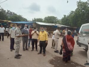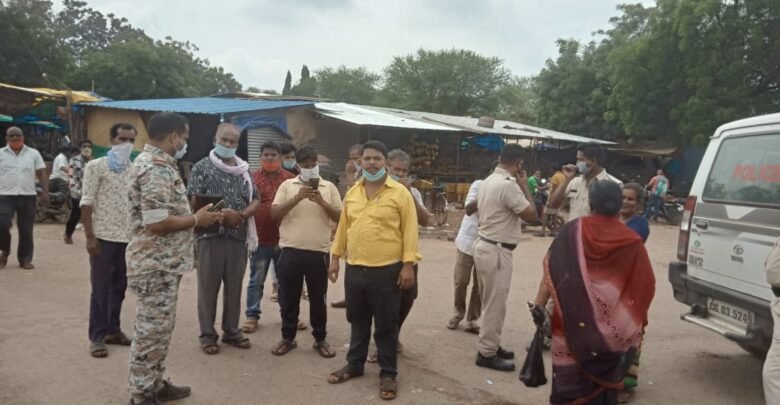 पुलिस प्रशासन चौकी प्रभारी नन्दकिशोर गौतम ,नगर निरीक्षक सुमत राम साहू पहुँचे सब्जी मंडी, सब्जी विक्रेताओं से की आवश्यक बाते