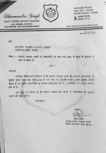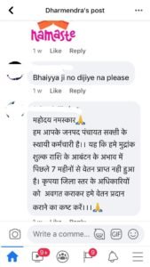 जनपद पंचायत सक्ती के नियमित कर्मचारियों को पिछले सात महिनों से वेतन प्राप्त नहीं होने की बात करते हुए एक आवेदन प्राप्त हुआ जिसको तत्काल संज्ञान मे लेते हुए धर्मेन्द्र सिंह द्वारा उच्च अधिकारियों से इसकी जानकारी ली गई एवं रूके हुए वेतन को जल्द से जल्द भुगतान कराने हेतु छत्तीसगढ़ के राज्यपाल महोदया एवं प्रदेश के मुख्यमंत्री भूपेश बघेल, पंचायत एवं स्वास्थ्य मंत्री श्री टी.एस. सिंह देव एवं विधानसभा अध्यक्ष डॉ चरणदास महंत को पत्र के माध्यम से जानकारी देकर रूके हुए वेतन का जल्द से जल्द भुगतान कराने हेतु निवेदन किया है।
