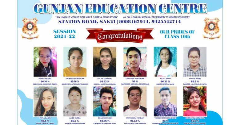 10वीं,12वीं का रिजल्ट घोषित, गुंजन एजुकेशन सेंटर, सक्ती के विद्यार्थियों ने किया शानदार प्रदर्शन