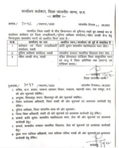 1/6/22 को जारी आदेश से स्पष्ट है कि जिला कलेक्टर कार्यालय तथा पुलिस अधीक्षक कार्यालय ग्राम जेठा में खोला जाएगा।