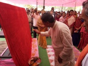 डॉ महंत के द्वारा सर्वप्रथम नवनिर्मित अतिरिक्त कक्ष का फीता काटकर एवं पूजन कर लोकार्पण किया गया। कार्यक्रम के प्रारंभ में डॉ महंत के द्वारा शिक्षा जगत के लिए समर्पित सेवानिवृत्त शिक्षक भोलाशंकर तिवारी का सम्मान शाल एवं श्री फल के द्वारा किया गया। ग्रामीण क्षेत्र में सामाजिक योगदान के लिए ग्राम के बुजुर्गों को रामायण एवं श्री फल से सम्मानित किया गया।