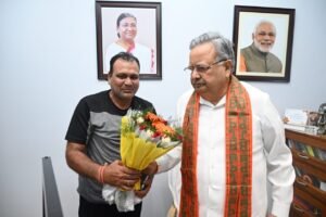 राजनांदगांव: पूर्व जिला पंचायत सदस्य संजय रामचंद्र ने छत्तीसगढ़ प्रदेश में भाजपा की जीत पर पूर्व मुख्यमंत्री डॉ रमन सिंह से सौजन्य मुलाकात कर जीत की बधाई दी।