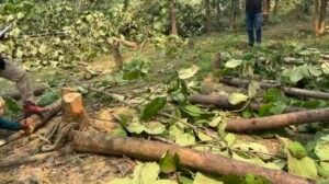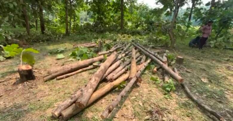 एमआरएस मिनरल्स की दबंगई : वन भूमि पर सागौन पेड़ों की कटाई, प्रशासन की चुप्पी पर उठे सवाल