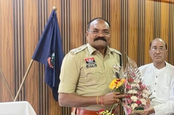 नवनियुक्त पुलिस अधीक्षक से कांग्रेस नेता घनश्याम पांडेय ने की सौजन्य भेंट